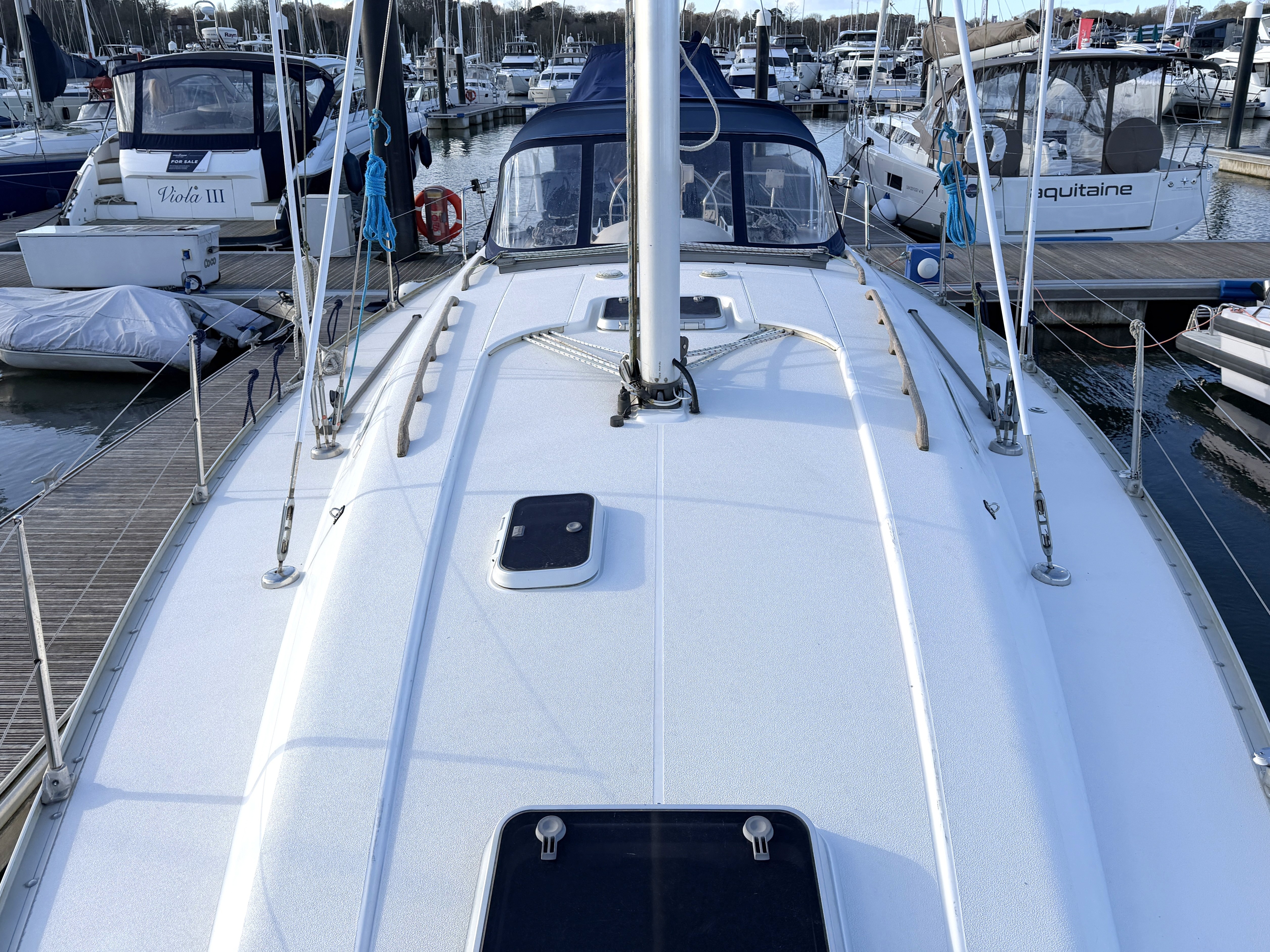 Moody S38 built in 1997. Lovely example of this popular aft cockpit twin aft cabin model sailing cruiser. Fin keel. The inventory includes Eberspacher cabin heating, New Volvo Penta 40hp and saildrive in 2012. Hood main and furling genoa. Solid teak aft cockpit seating and sole. ST6000+ autopilot, Garmin Plotter. Tridata & Mulit. Lofrans Windlass.