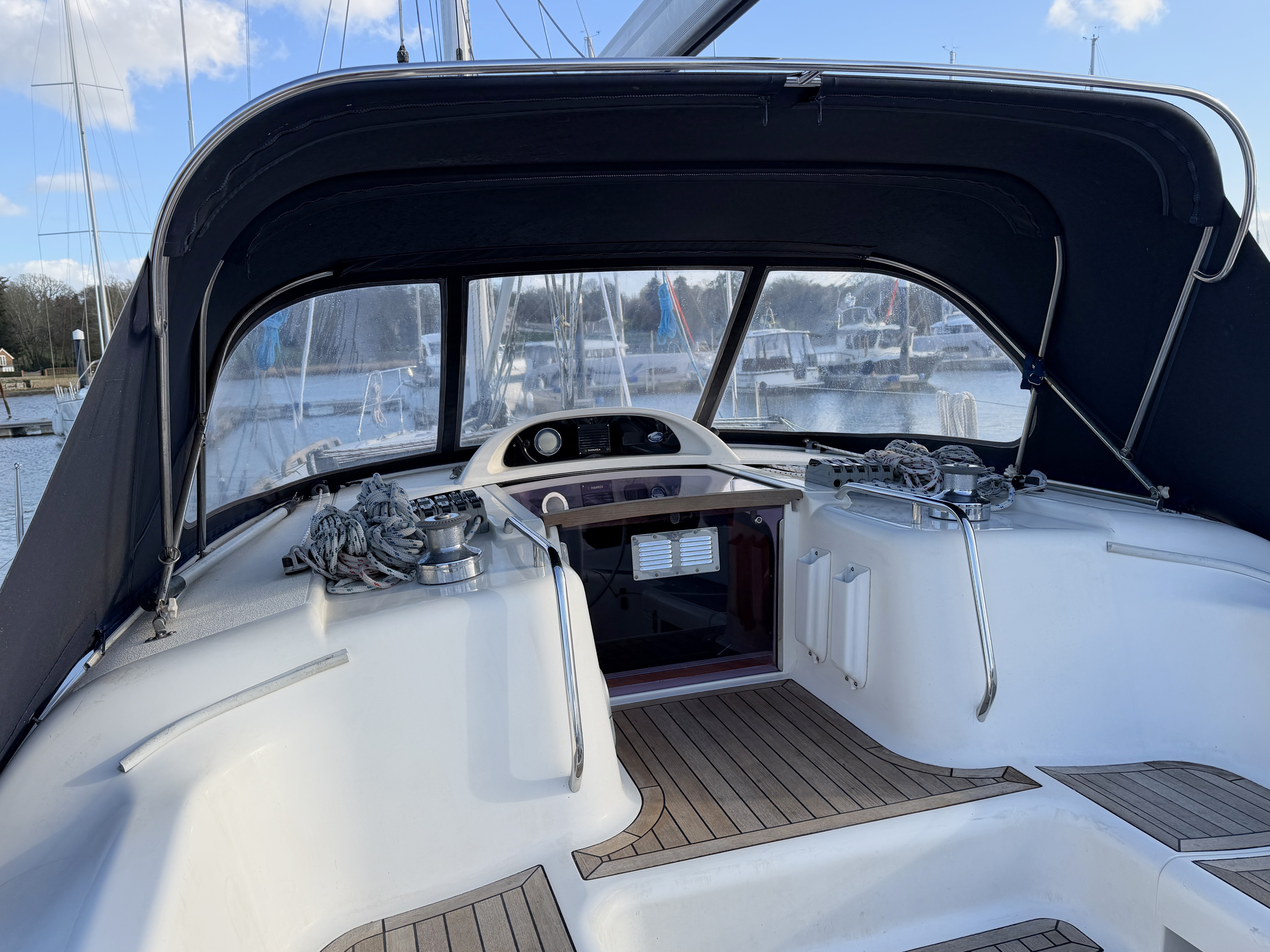 Solid teak aft cockpit seating and sole