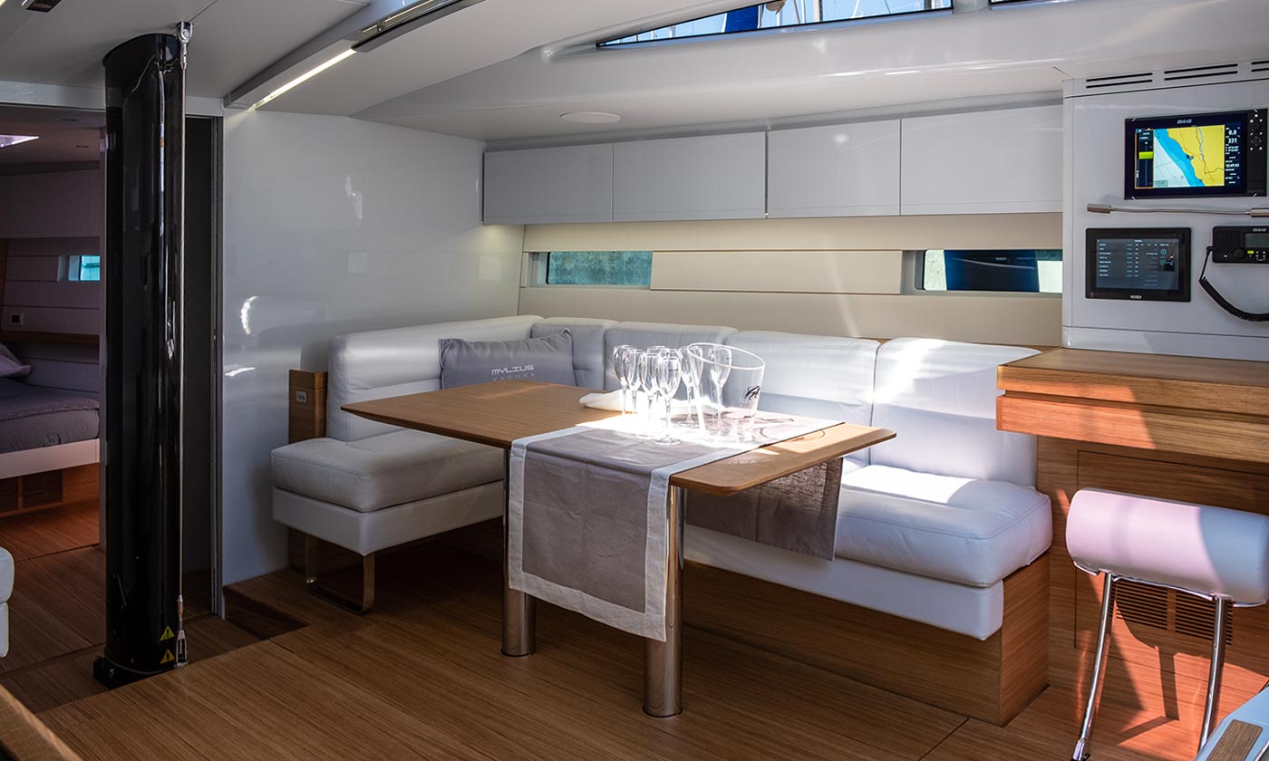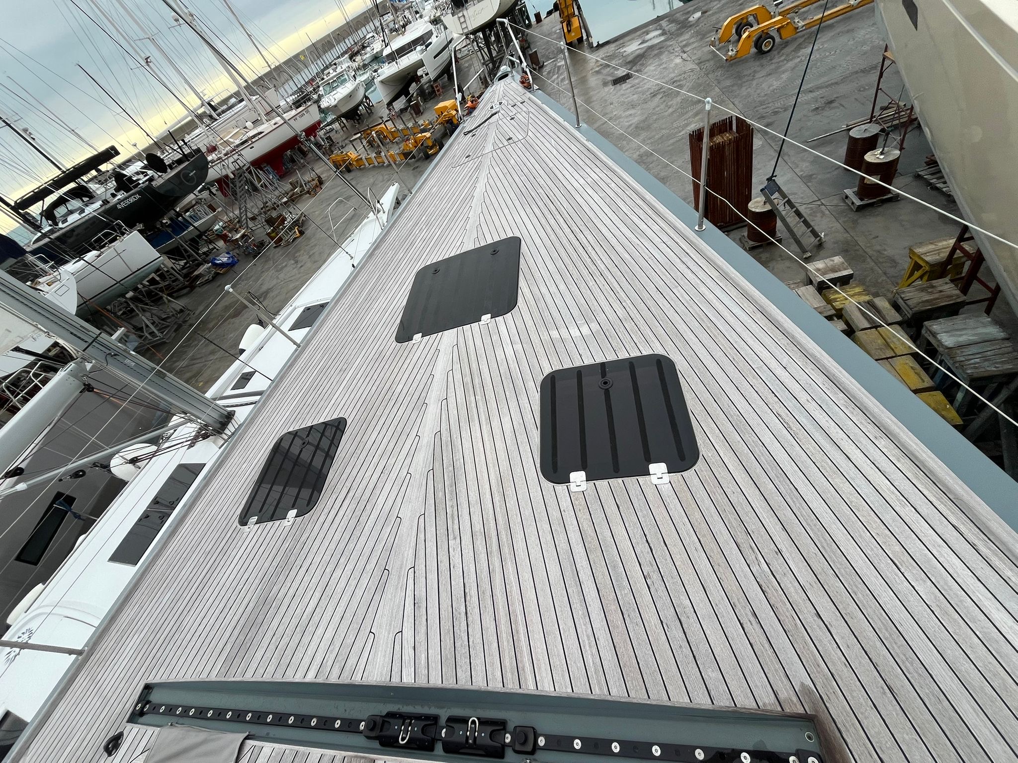 The Mylius 60 first appeared as a concept yacht in 2013, but quickly established itself as a yacht in demand from the markets. The first production hulls were subsequently built and launched between 2013-2015, where the 60 cemented itself as a leading design in this category. In 2017 she was redesigned to incorporate the "flush deck" FD version, which also lengthened and widened the hull, giving a larger transom area and much increased interior volume. The full carbon construction, paired with her deep keel and single rudder and the comprehensive sail handling systems, meant she ticked a lot of boxes for owners with high performance on their mind. Designed by Alberto Simeone, one of the companies co-founders, its very clear to see this is a yacht designed and built by sailors and features plenty of clever engineering in her approach, to ensure the yacht delivers in all areas.