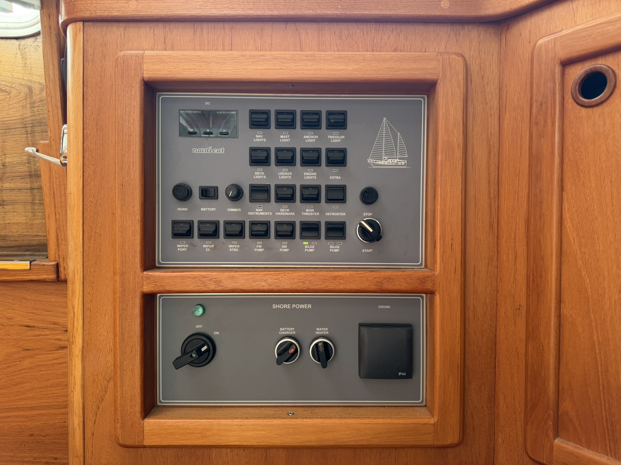 12V sockets in galley, saloon and aft stateroom.