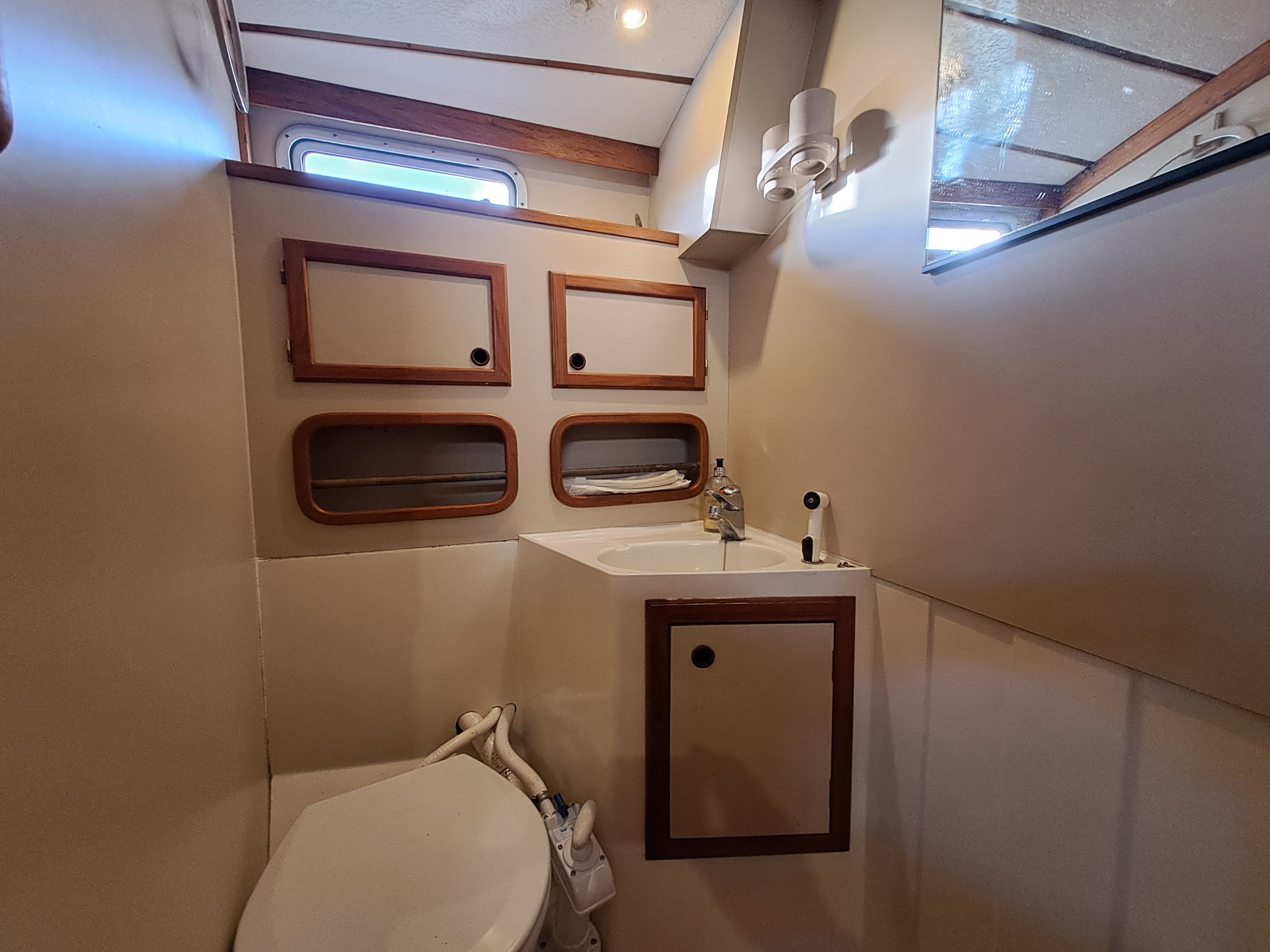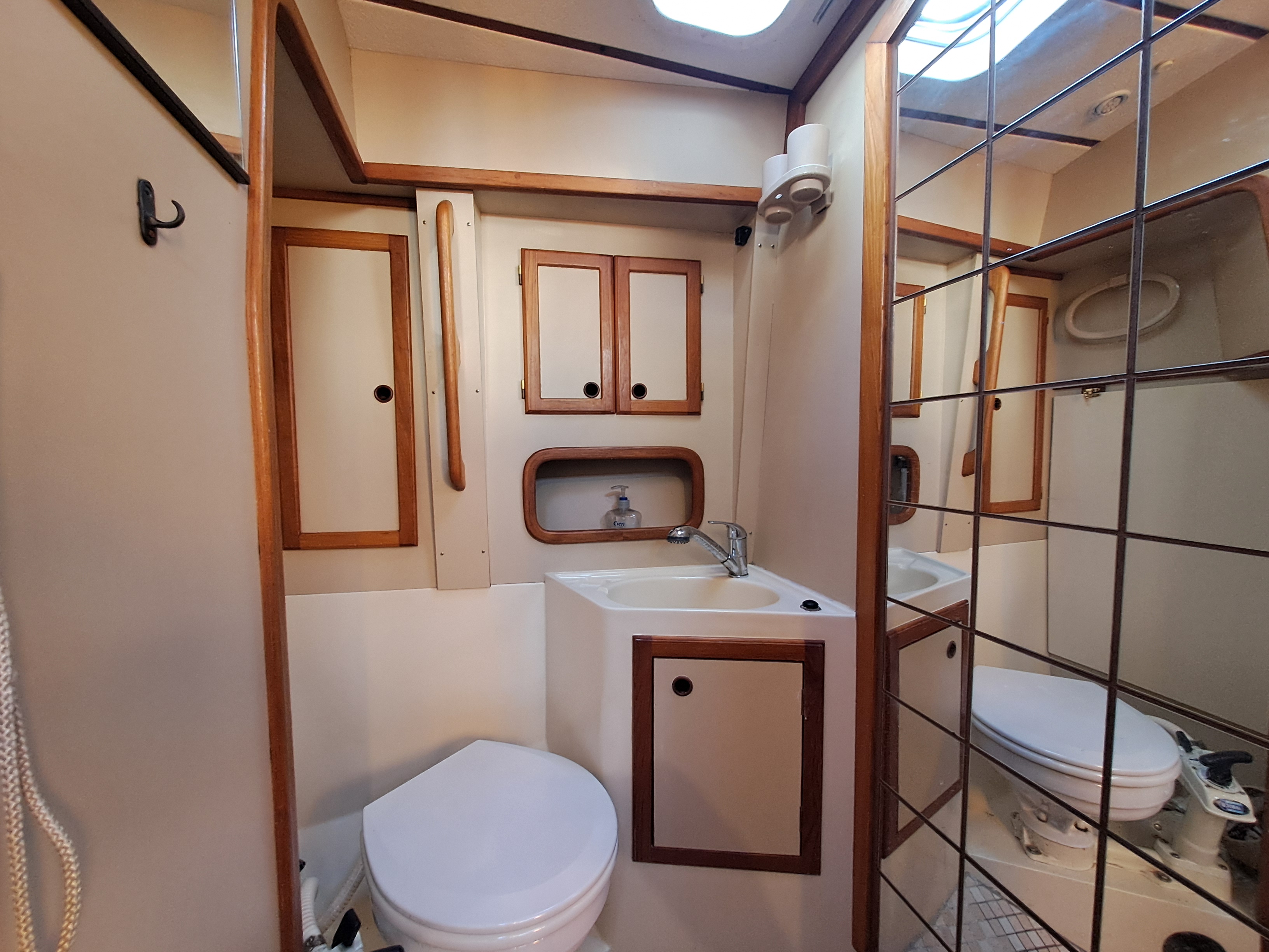 Hand basin with mixer tap and pull out shower head, Jabsco marine toilet and shower