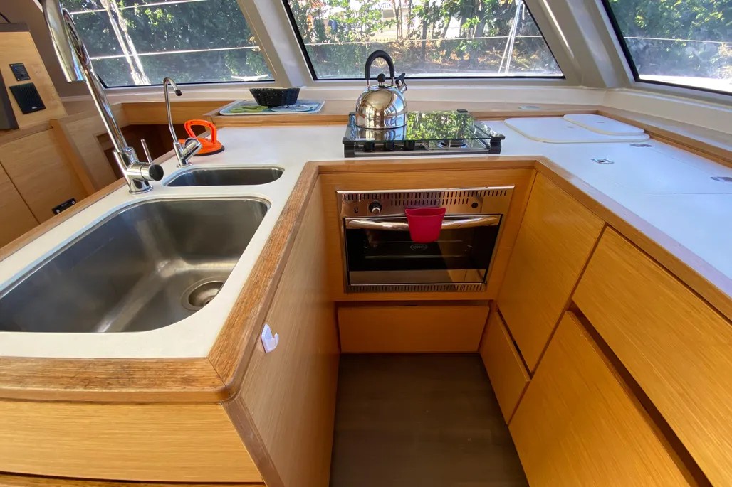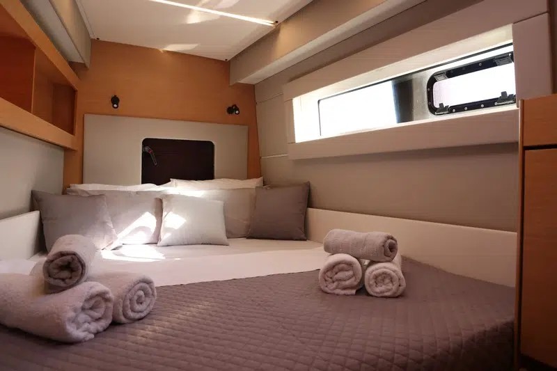 The Nautitech 46 Fly offers generous space across the flybridge, cockpit, and foredeck, providing effortless relaxation, while Marc Lombard’s design combines elegance, performance, and surprisingly agile handling. Below deck, you’ll find four double cabins plus two converted forepeaks; the yacht is well equipped and meticulously maintained.
