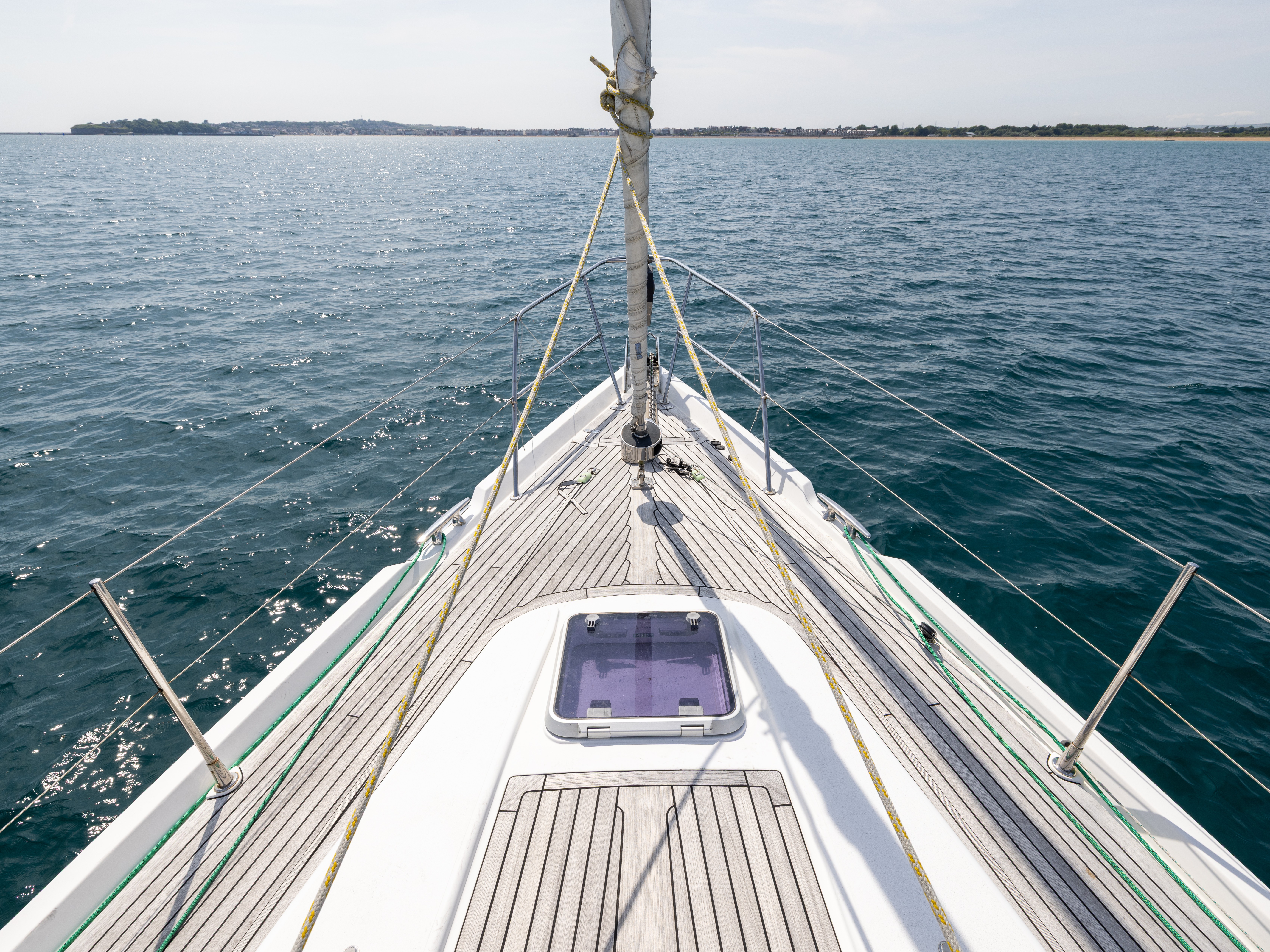 Teak laid decks with GRP low profile rolled edge bulwark