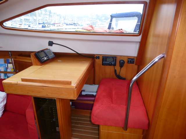 Small opening deck hatch, Chart table with chart stowage, Navigators seat with stowage below, 12v light, 12v outlet socket