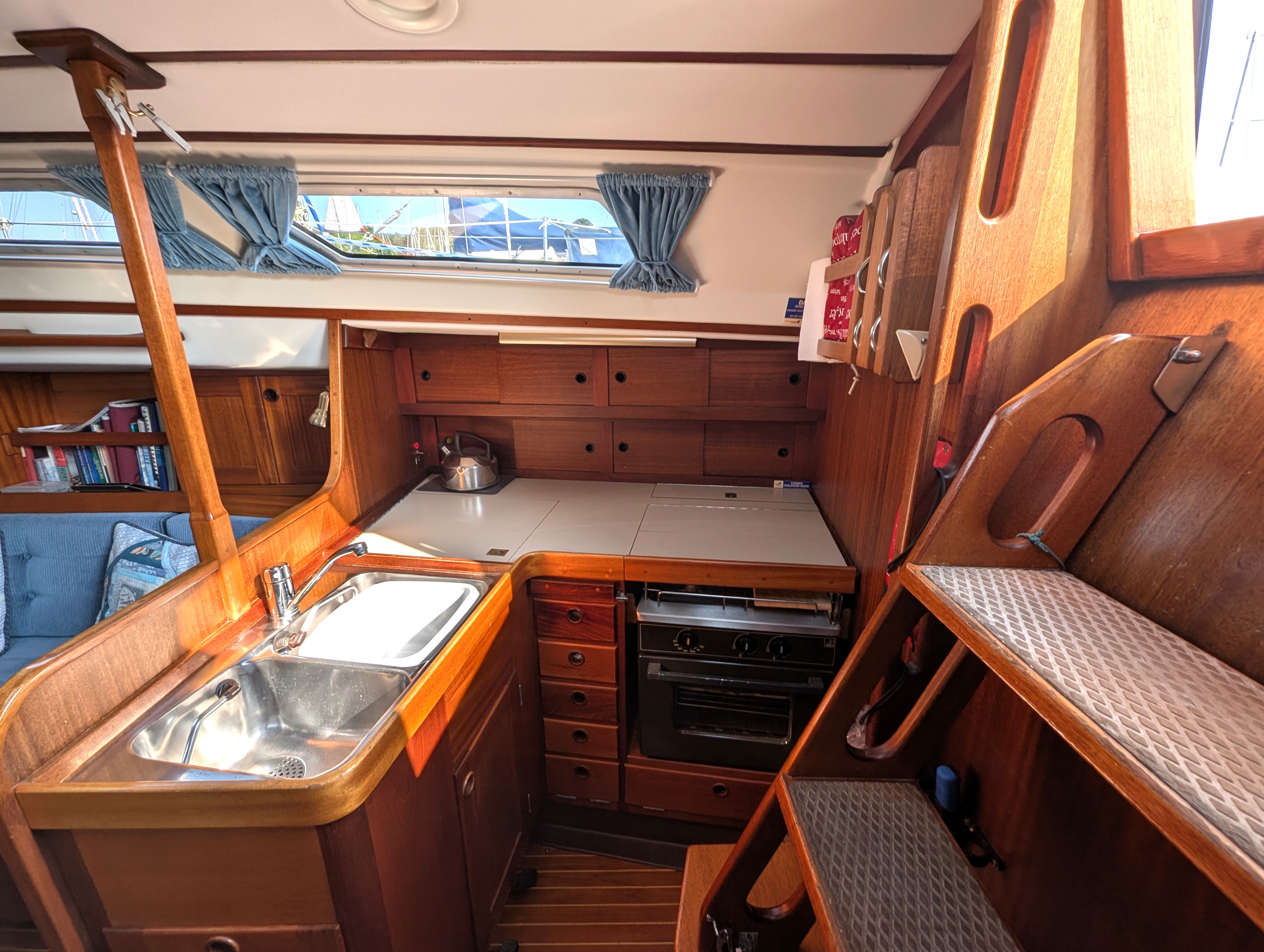 Sleeps six in two cabins plus saloon cabins.
