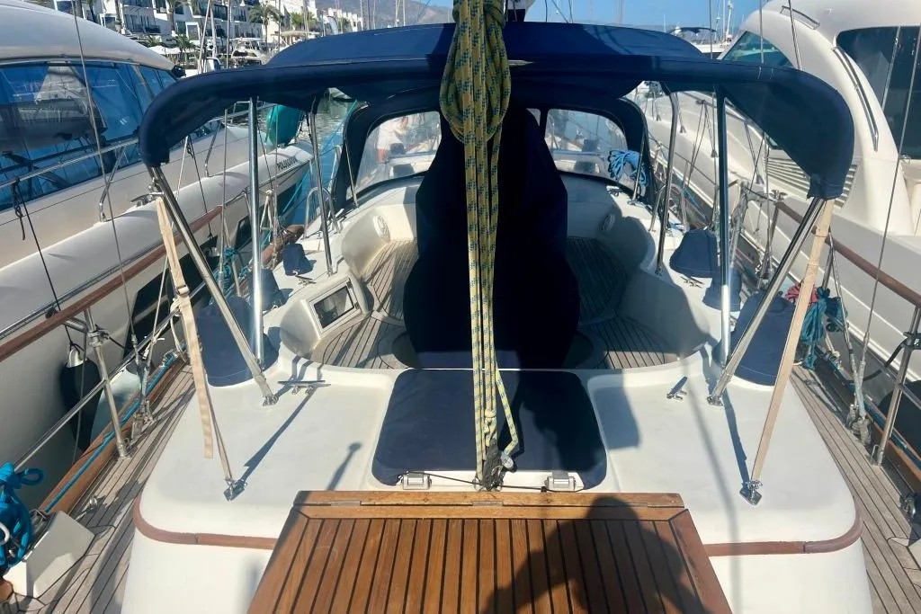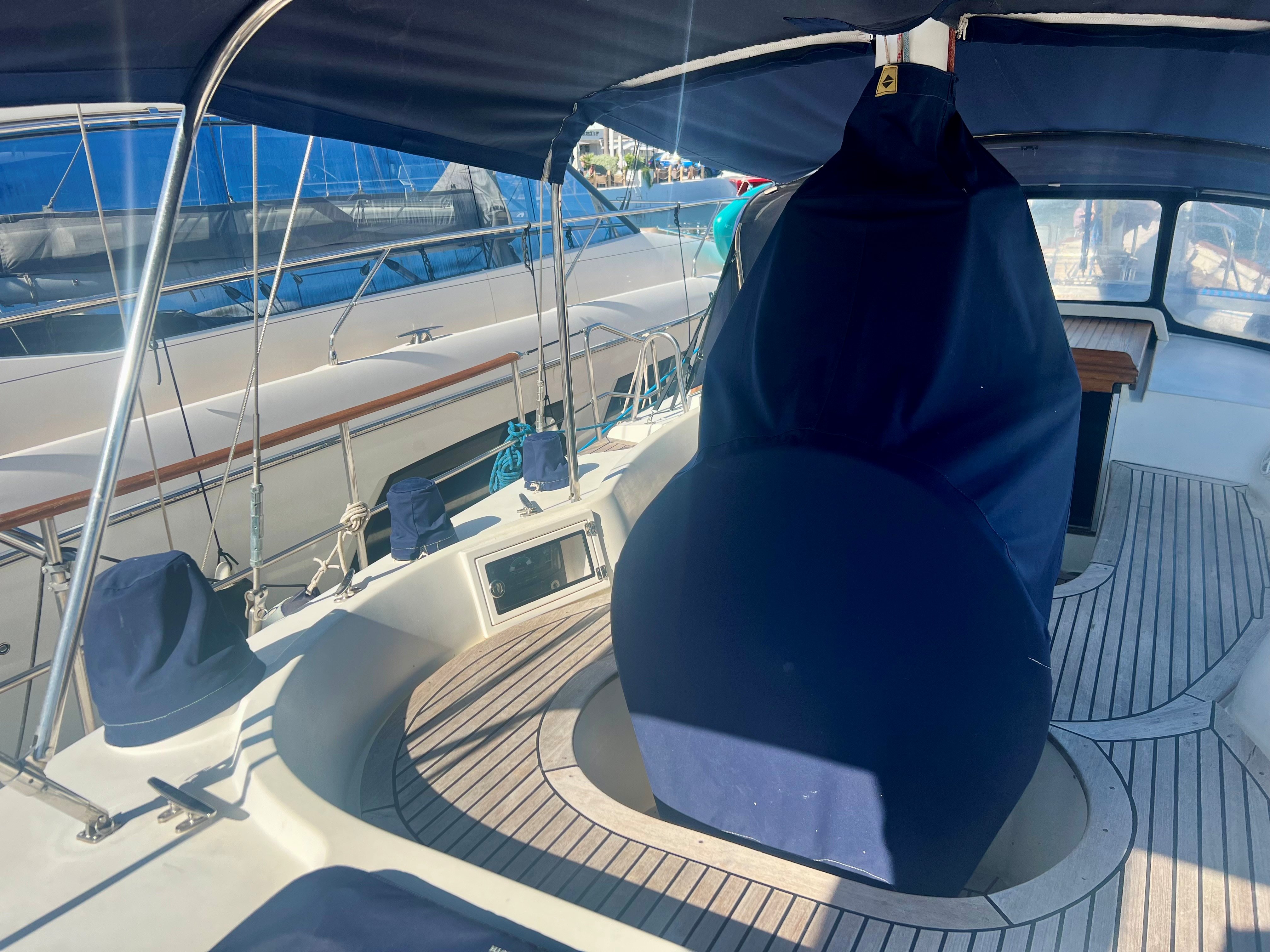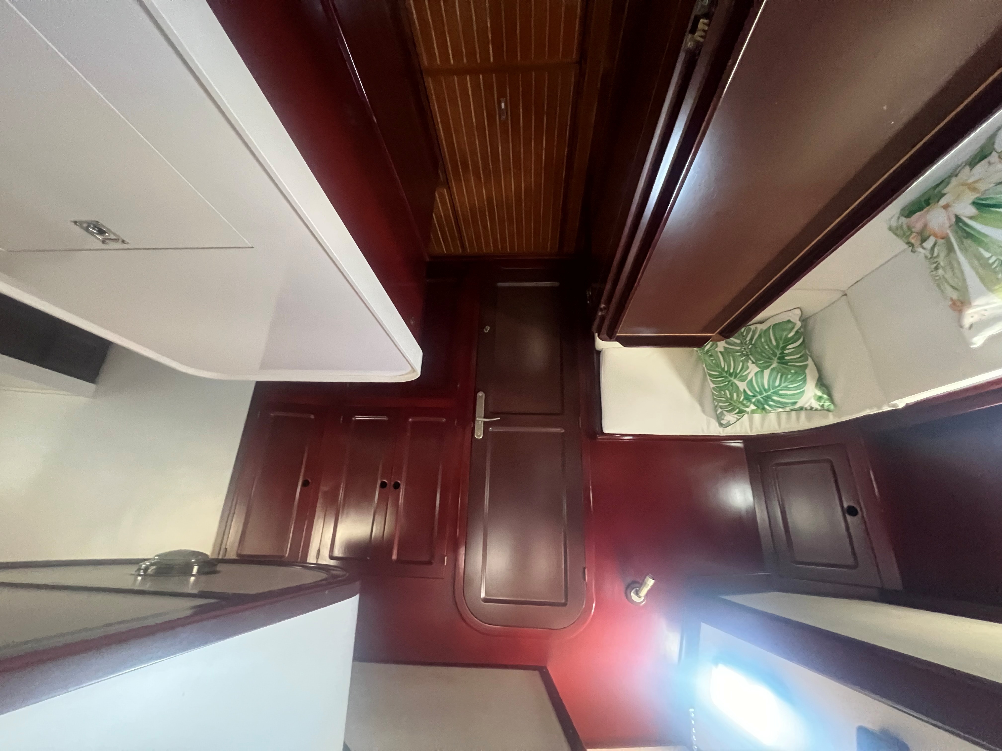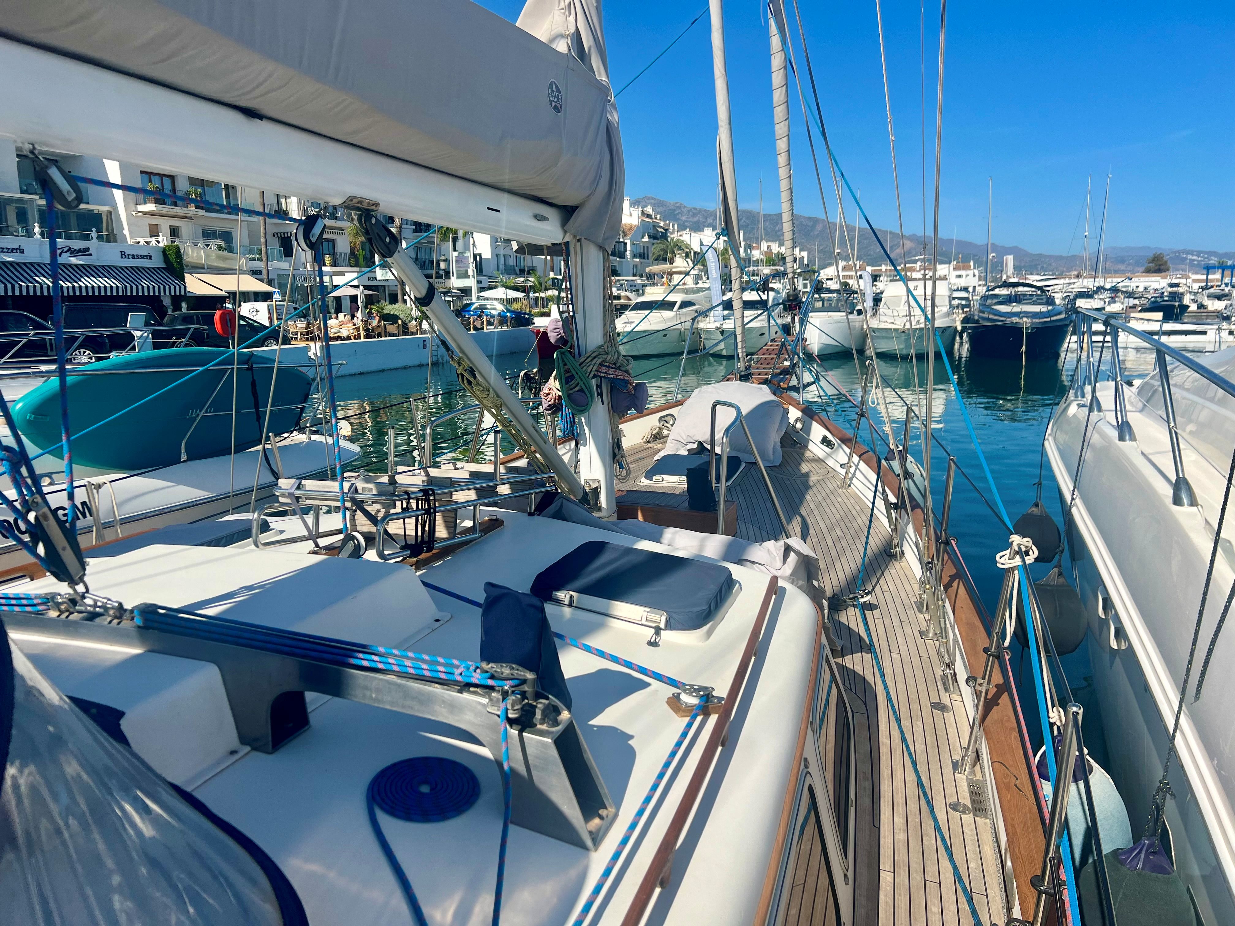 Her layout includes a spacious full-beam aft owner’s cabin with ensuite, two forward double guest cabins sharing a large head with shower, a bright and inviting main saloon, and a well-equipped U-shaped galley, perfect for extended cruising. The secure center cockpit, wide side decks, and versatile ketch rig ensure safe and manageable handling in all conditions.