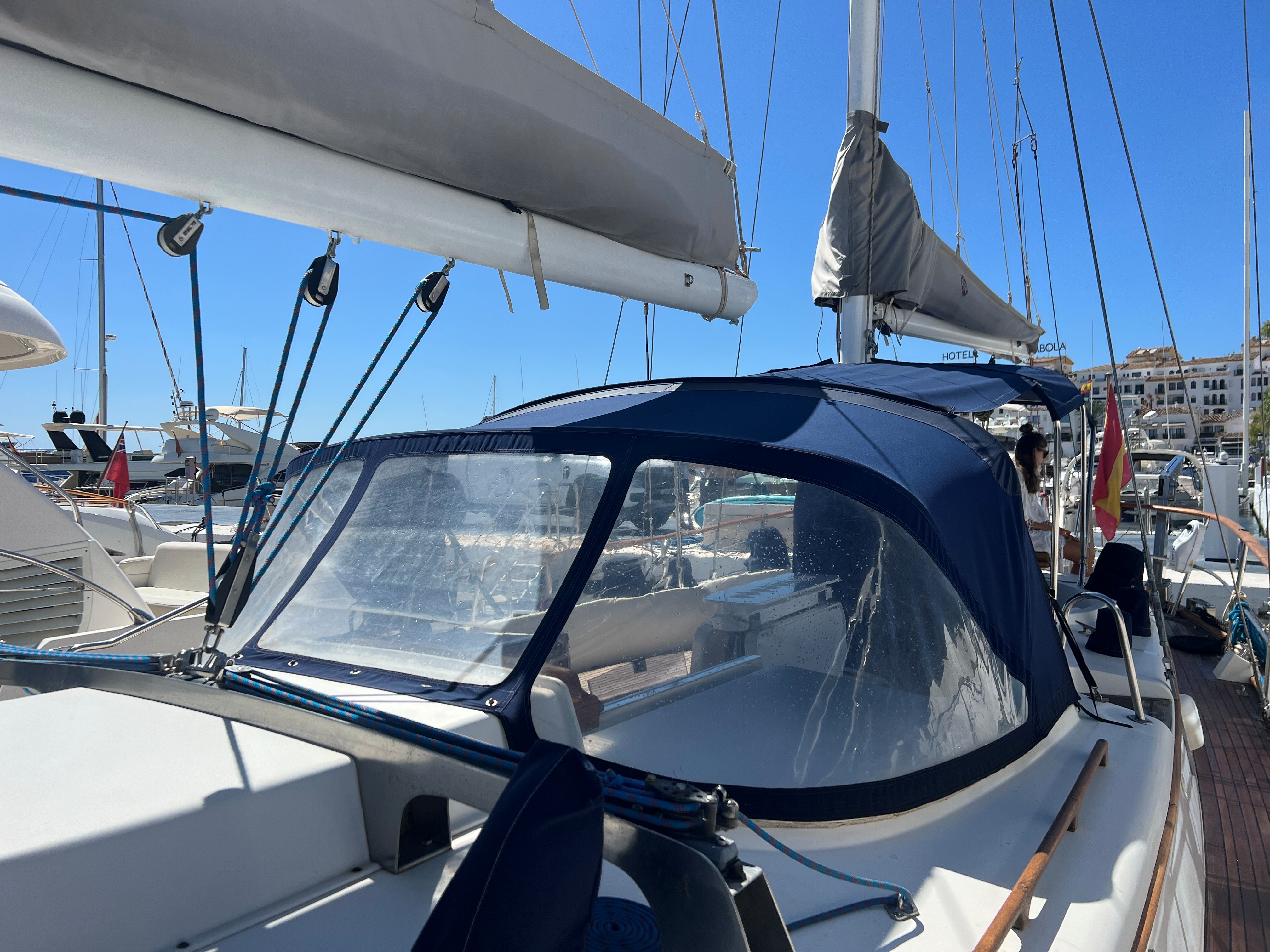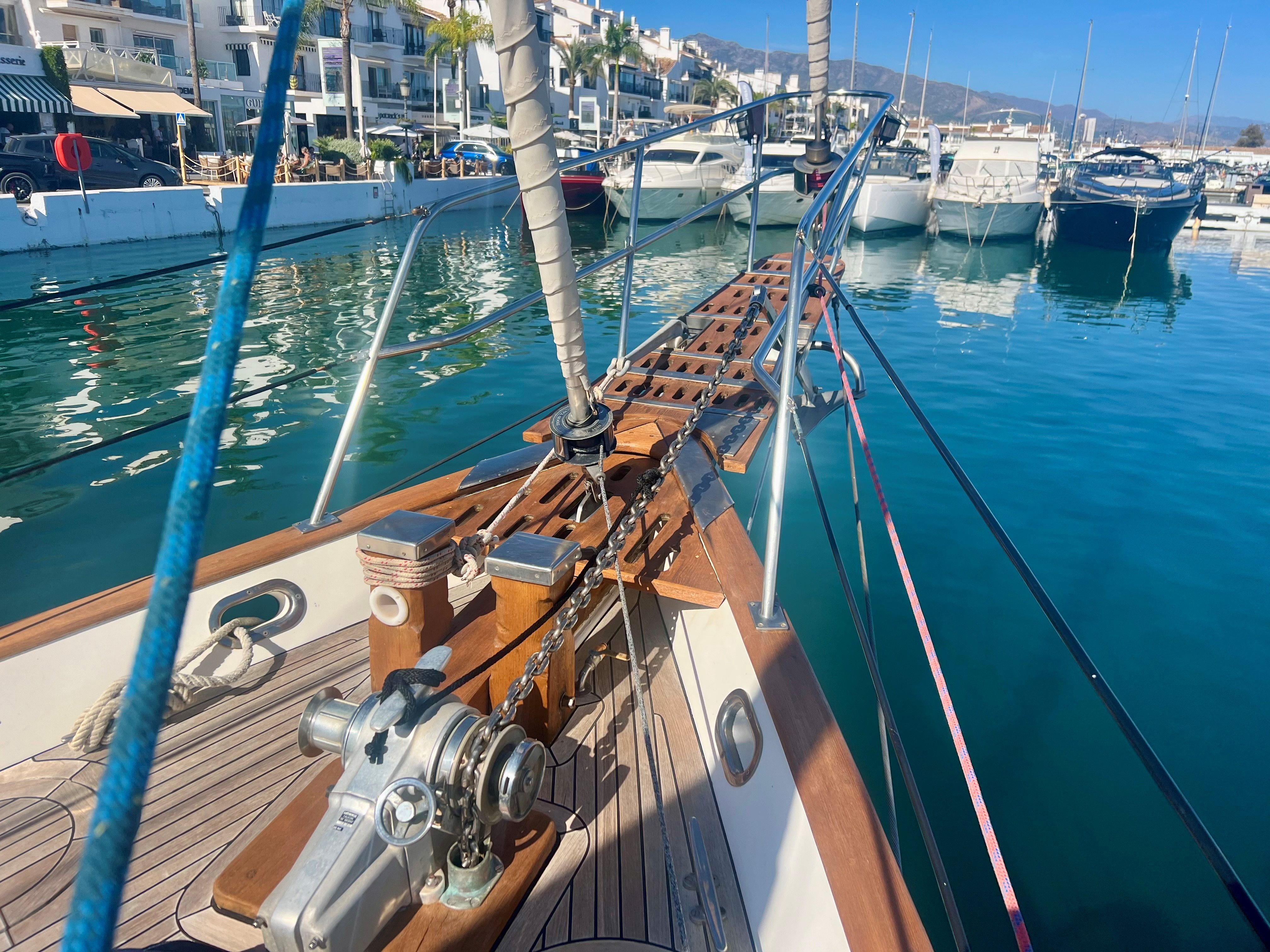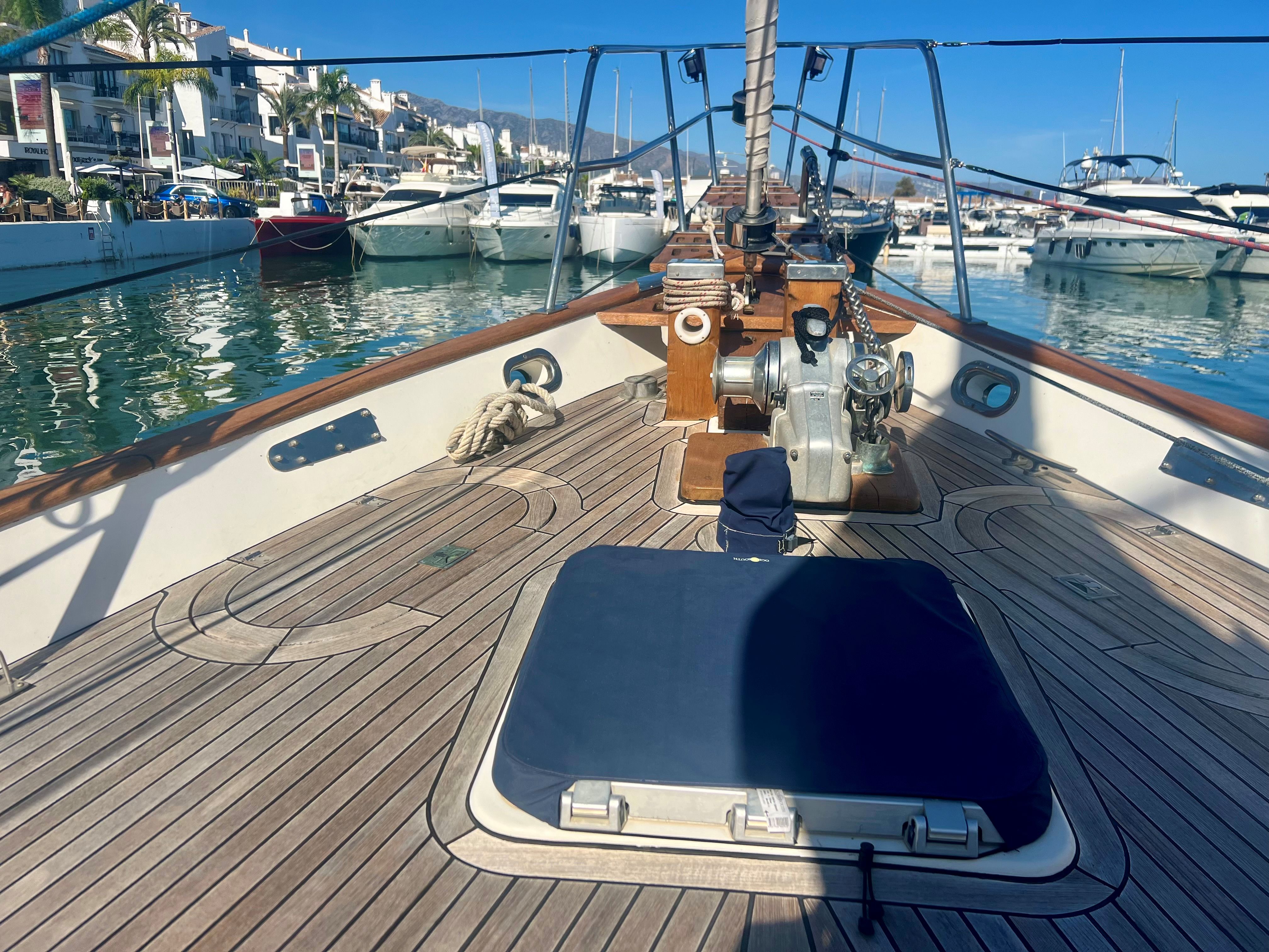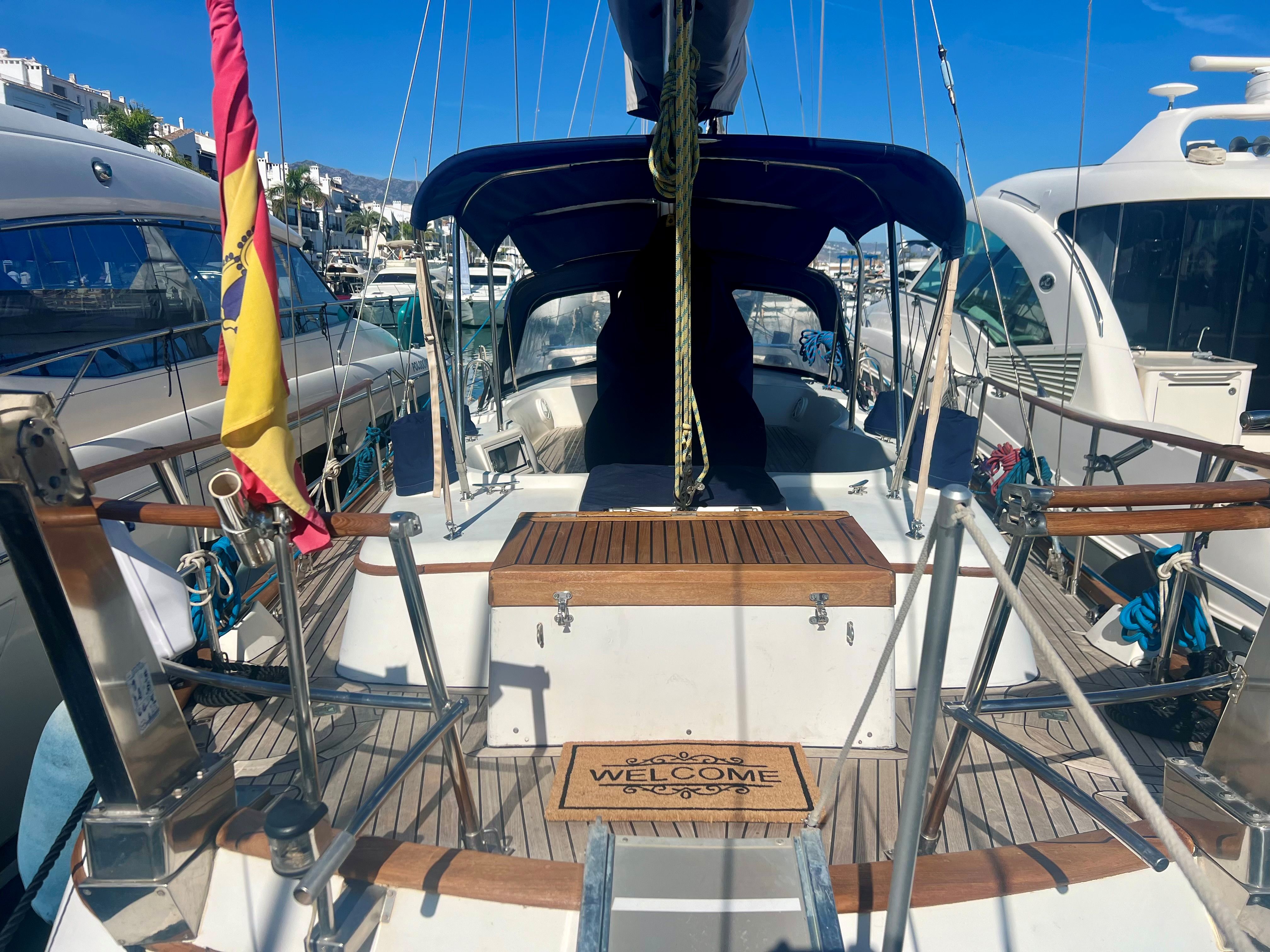Her layout includes a spacious full-beam aft owner’s cabin with ensuite, two forward double guest cabins sharing a large head with shower, a bright and inviting main saloon, and a well-equipped U-shaped galley, perfect for extended cruising. The secure center cockpit, wide side decks, and versatile ketch rig ensure safe and manageable handling in all conditions.