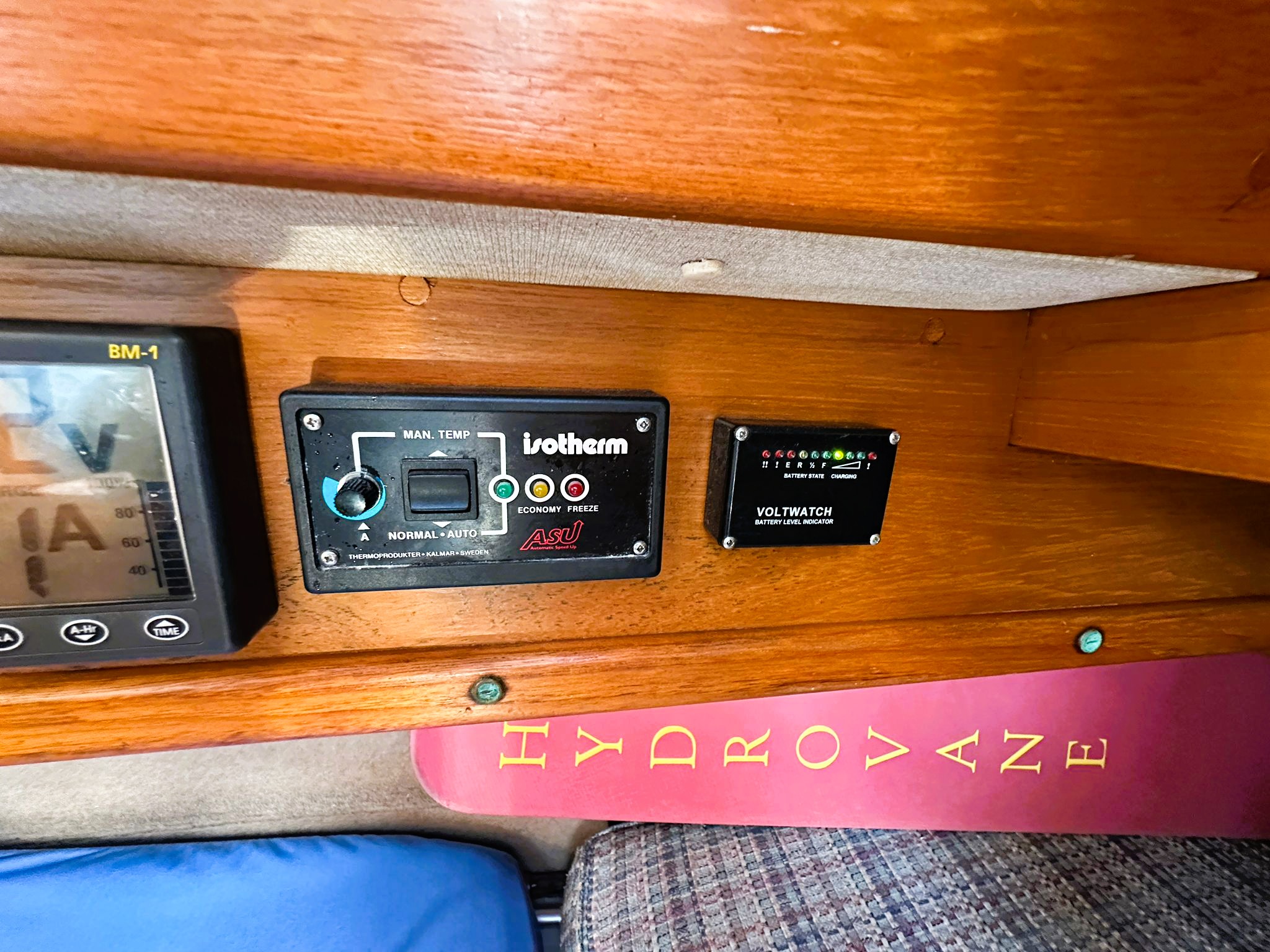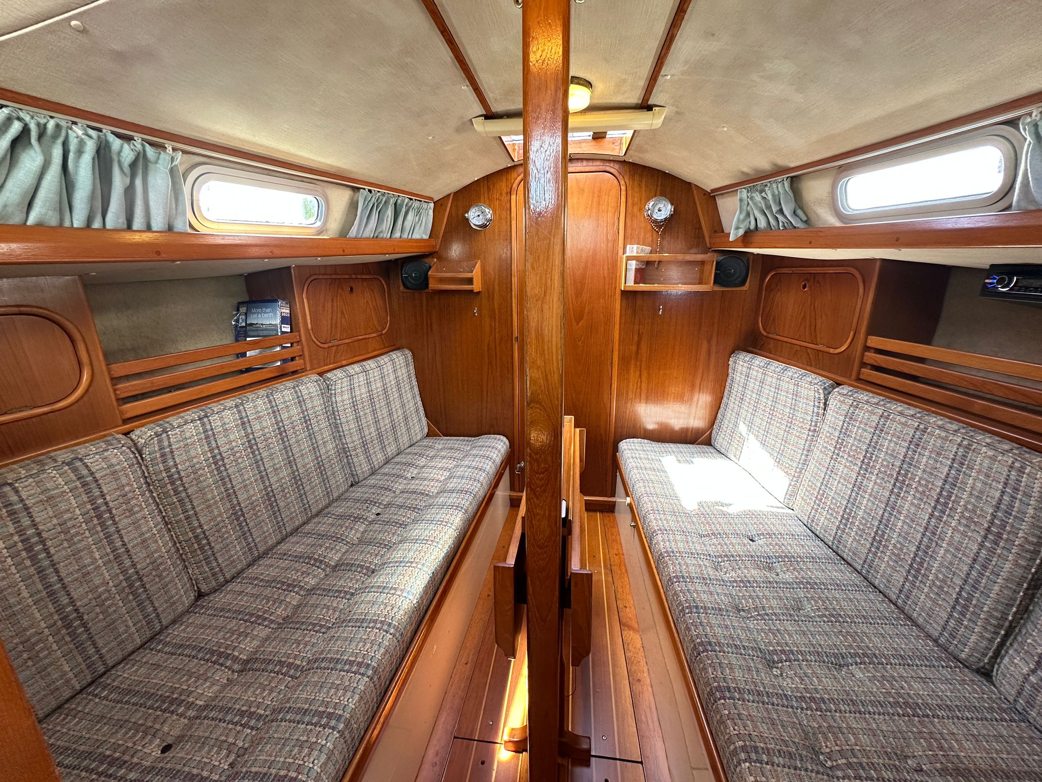 Settee berths port & starboard fitted with substantial lee cloths with storage underneath and outboard with upholstered backrests.