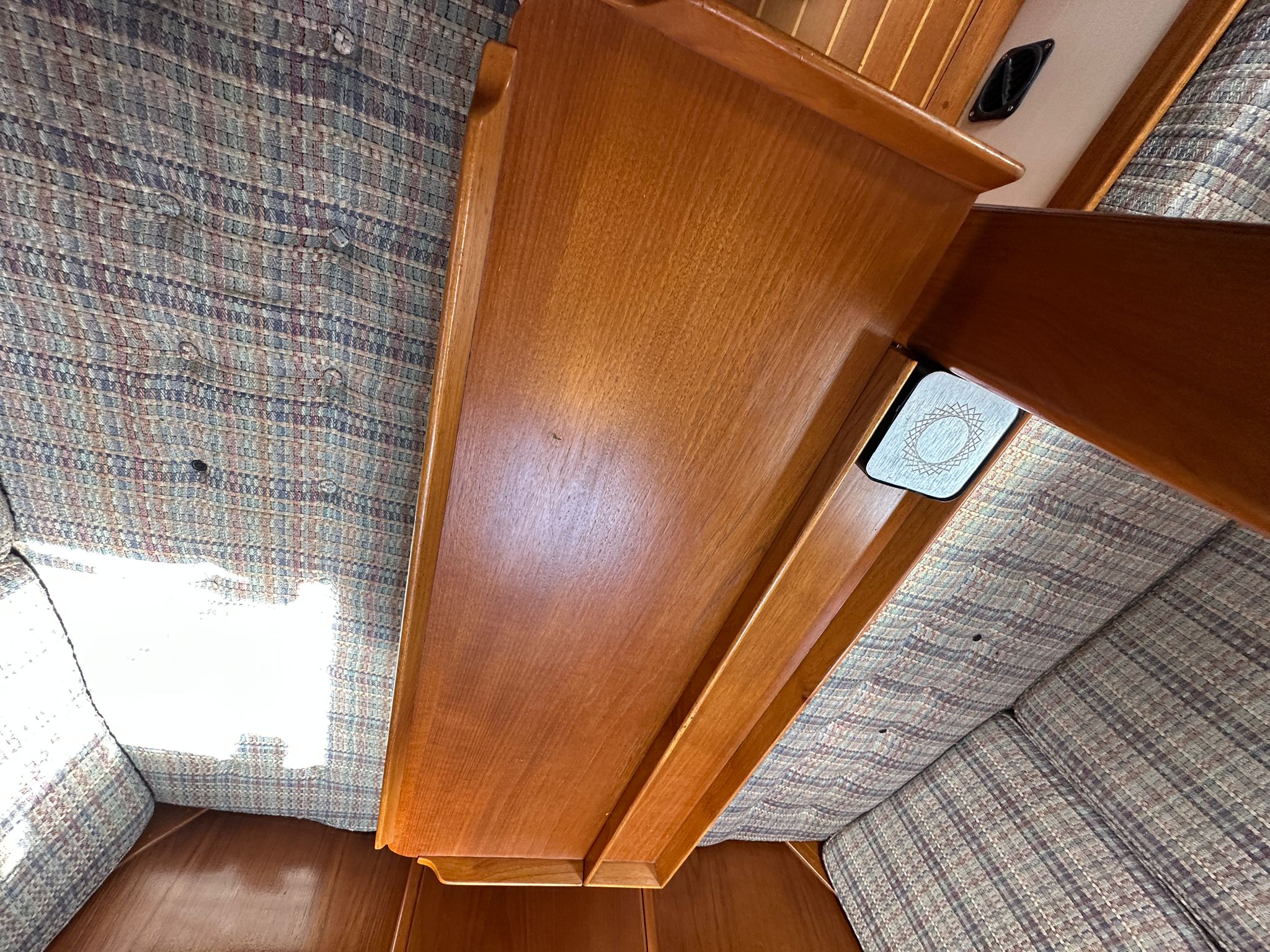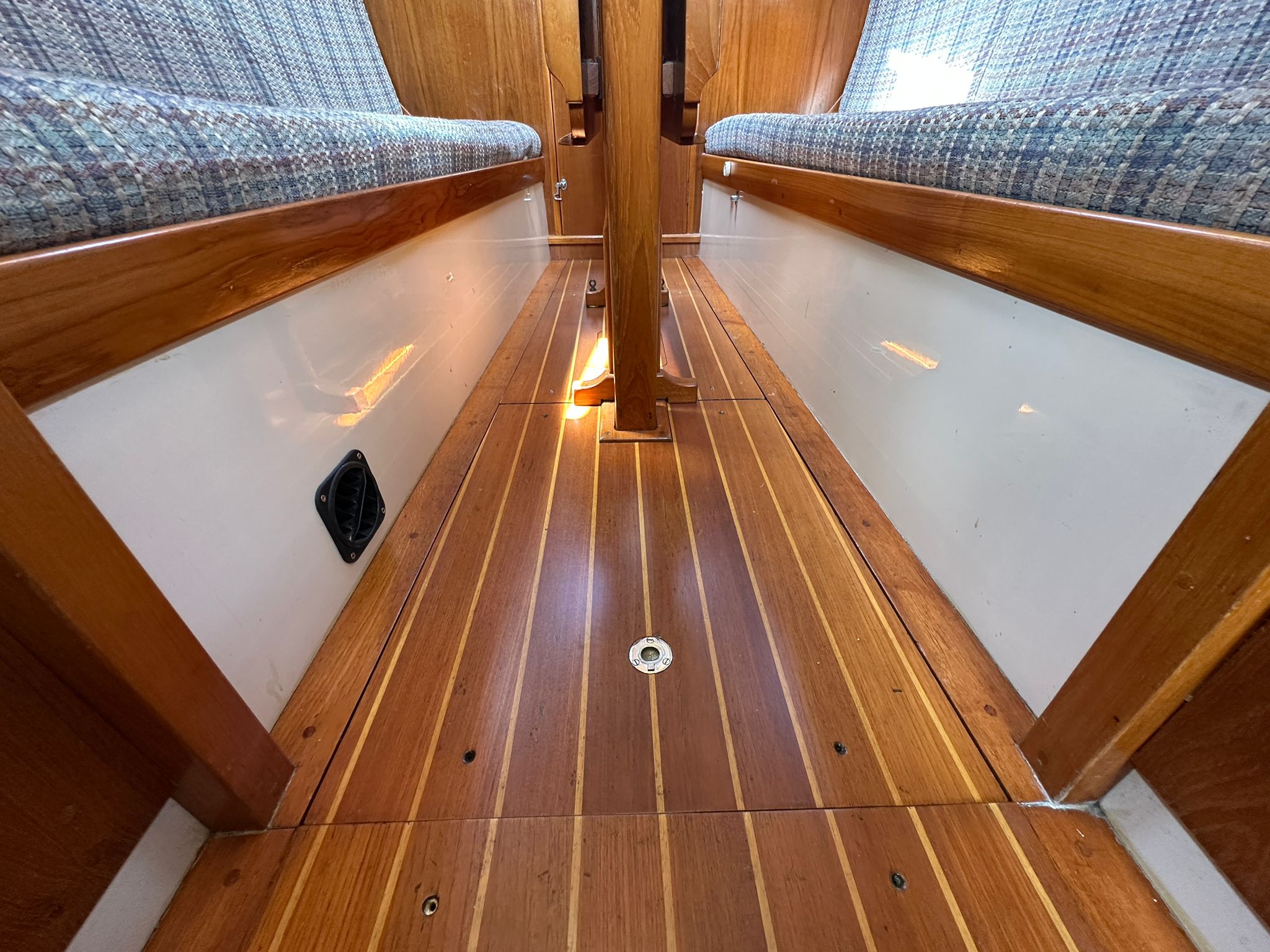 The forepeak is left open for sail stowage with access to the chain locker forward