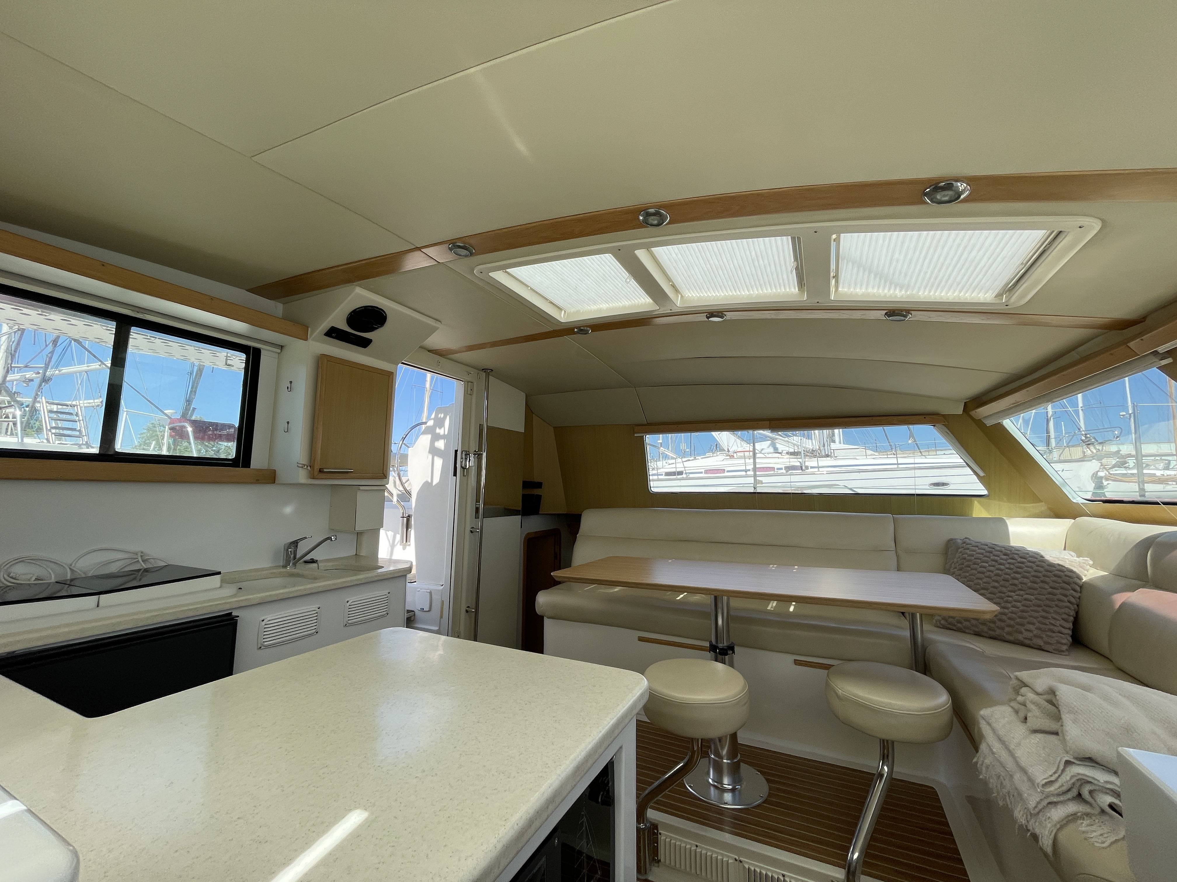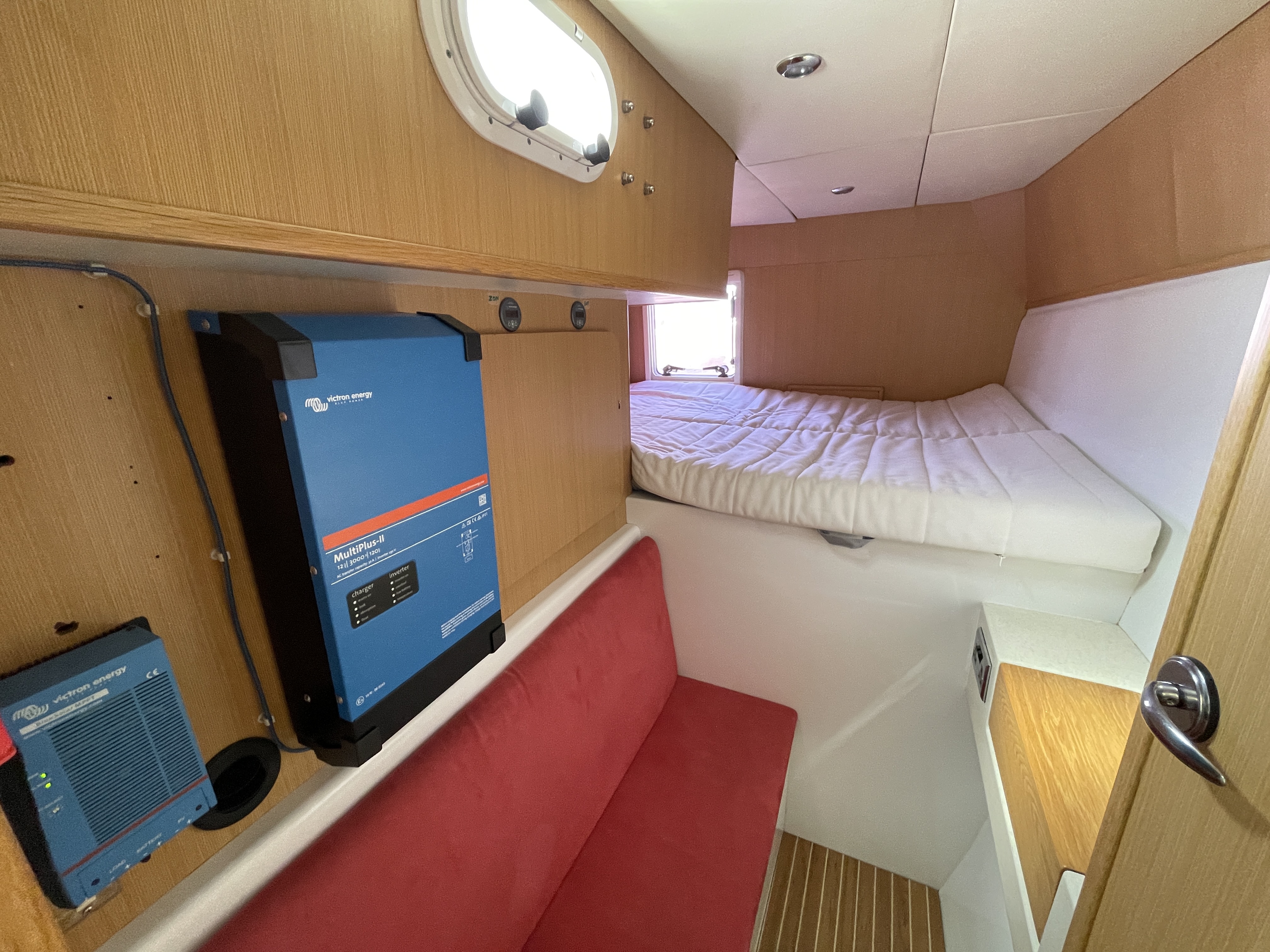 Equipment: 2 x BETA MARINE BD722SD 20hp engines, Starboard engine recently replaced - only 200 running hours - warranty until 2030, Portside engine from 2017, Radar, 3 x 300ah lithium service batteries - total 900ah lithium, 600W solar panels, VICTRON ENERGY MULTIPLUS II charger inverter, Hot air heating, Pressurised hot and cold water, stainless steel frame over entire cockpit, new dinghy