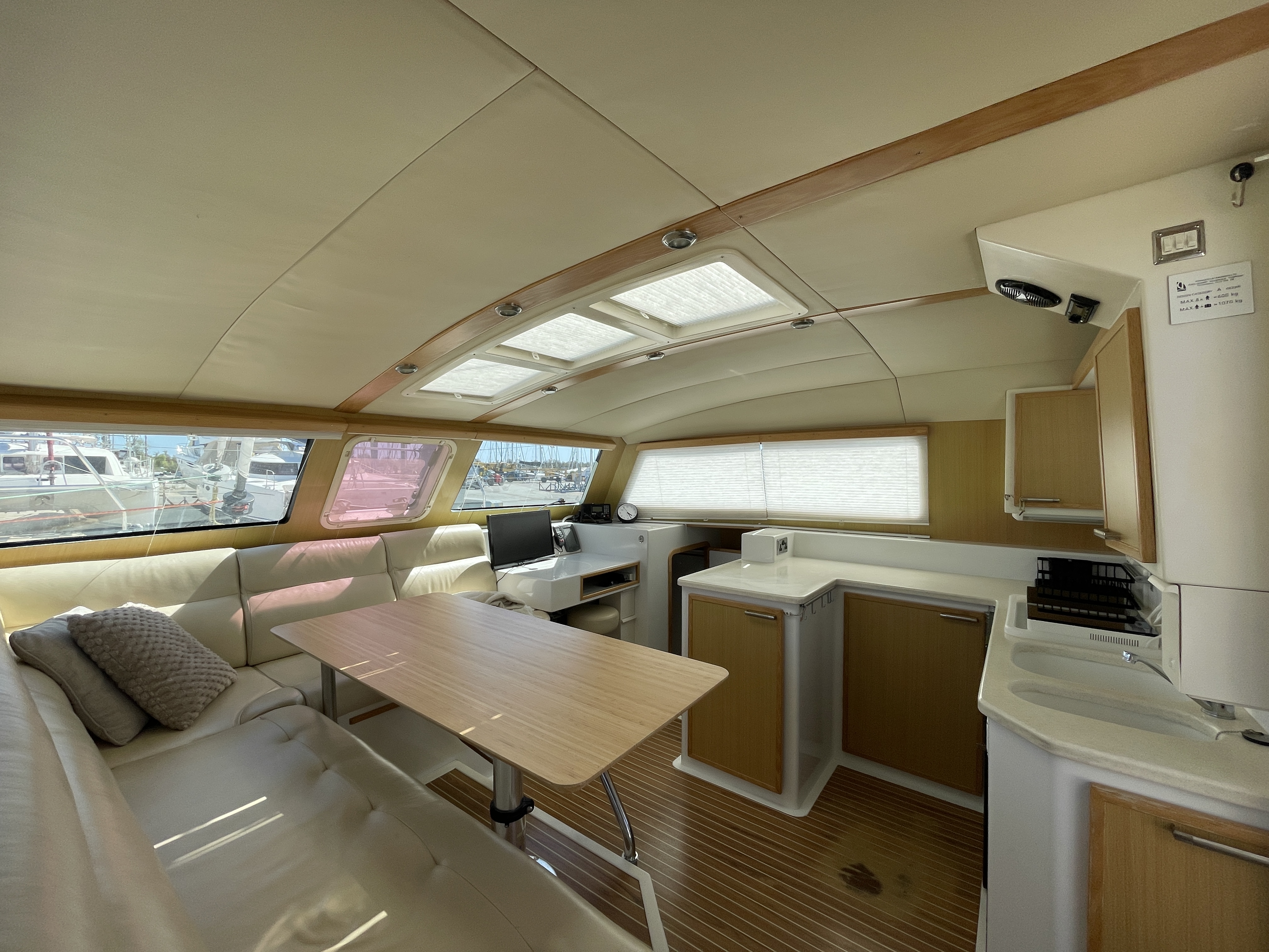 Equipement : 2 x BETA MARINE BD722SD 20cv, moteur tribord récemment remplacé - seulement 200 heures de fonctionnement - garantie jusqu'en 2030, moteur bâbord de 2017, radar, 3 x 300ah lithium batteries de service - total 900ah lithium, 600w de solaire, onduleur chargeur VICTRON ENERGY MULTIPLUS II, chauffage à air chaud, eau chaude et froide sous pression, cadre en acier inoxydable sur tout le cockpit, annexe neuve.